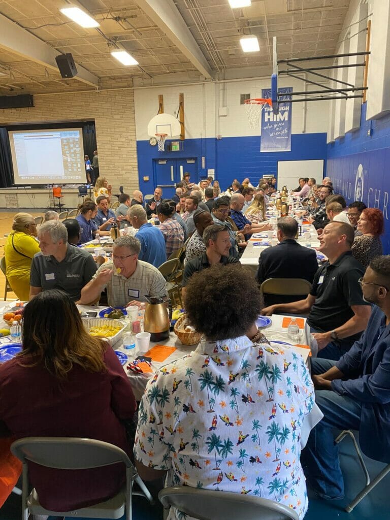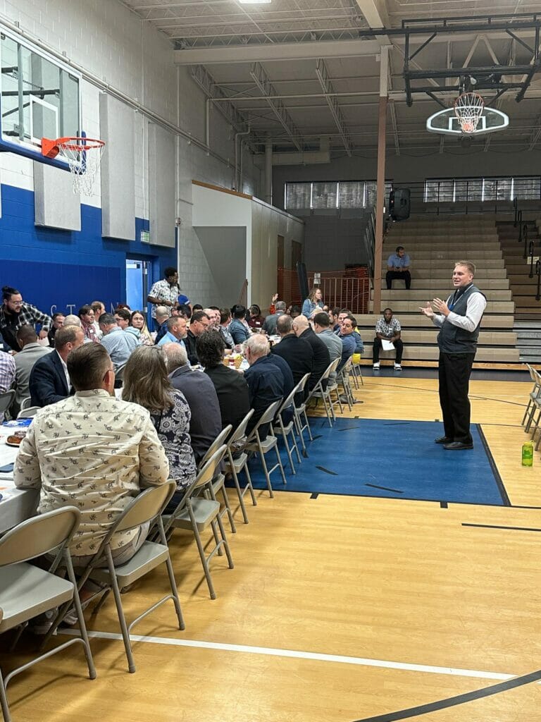 Seventy four churches were represented today. Pastor Dexter Harris of Flourish Church, delivered a word of encouragement for the church leaders during breakfast ahead of this special Chapel. Pastor Sam Hamstra of Anthem Church (Hammond), Pastor Kyle Beckrich of Bethel Church CRC (Lansing), and Pastor Drew Brown of Crossroads Community Church (Schererville) participated on our Pastors’ Panel. Following a time of worship and the word, students, staff, and parents gathered in church groups for a time of prayer.